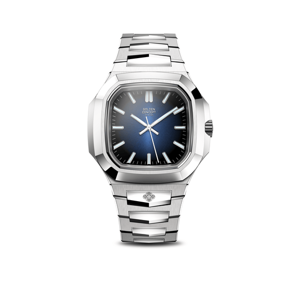 The Midnight Blue dial brings depth and atmosphere to the Royal Evening. Shifting from black at the perimeter to a deep, saturated blue at the center, it creates a subtle gradient that changes character with every angle. Finished with a fine sun-ray brushing, the dial reflects light with refined fluidity, giving the watch a presence that feels both modern and timeless. The GC FlexLink™ bracelet completes the piece, crafted in stainless steel with alternating brushed and polished facets that elevate the watch's presence on the wrist.