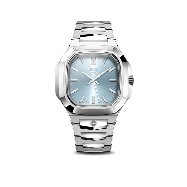 Sierra Blue brings a fresh, airy character to the Royal Evening. The icy light-blue tone, accentuated by fine sun-ray brushing, reflects light with soft clarity and a sense of openness. Elegant and calmly expressive, it offers a distinctive identity while maintaining a timeless aesthetic. The GC FlexLink™ bracelet completes the piece, crafted in stainless steel with alternating brushed and polished facets that elevate the watch's presence on the wrist.