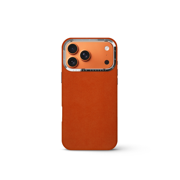 Created for iPhone 17 Pro and Pro Max, the Alcantara® iPhone Case redefines the way the device is experienced. Vivid orange Alcantara® delivers a confident, tactile grip and a bold, energetic character, elevated by white gold–plated metal details that bring clarity, refinement, and purpose. The contrast between soft performance material and precious metal results in an iPhone that feels precise, assured, and intentionally crafted.